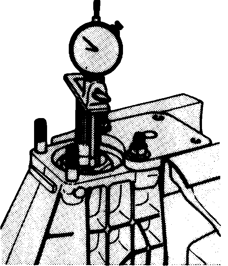 13. Slide dial indicator holder to bring dial indicator plunger into contact with machined surface of fixture. Displacement shown by dial indicator indicates depth of plunger. Note value obtained.
