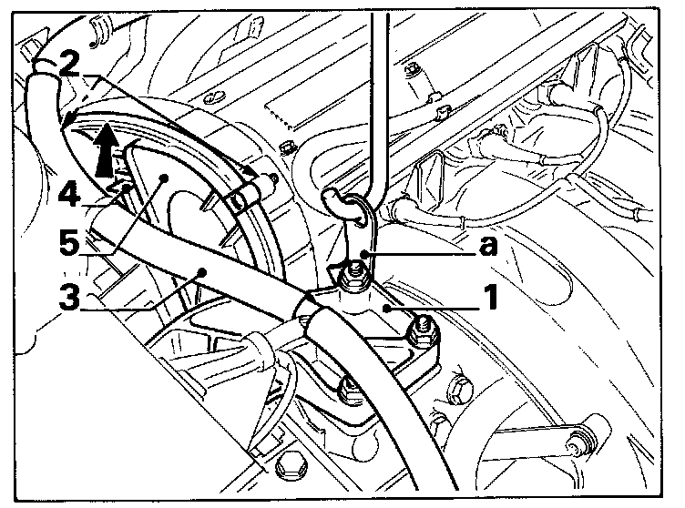 - Support the engine using the lifting hook at (a) or place a floor jack under the engine.