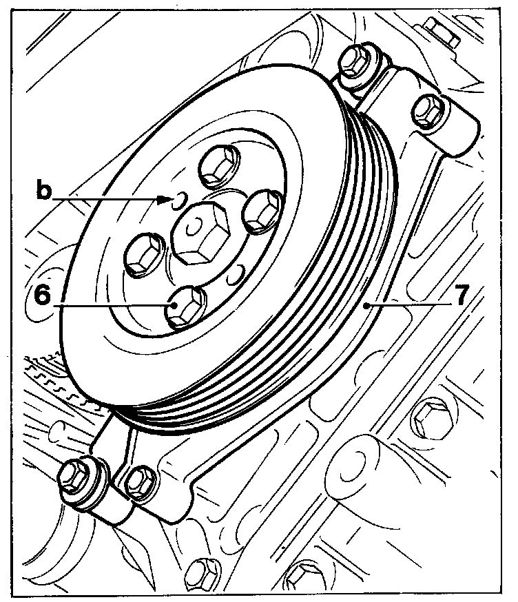 - Lock the flywheel with tool J 36358 (P.N. 91.86)