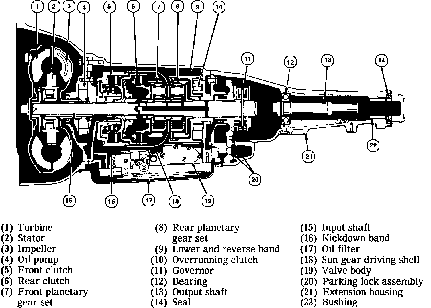 Fig. 1 Sectional view of Torqueflite automatic transmission: