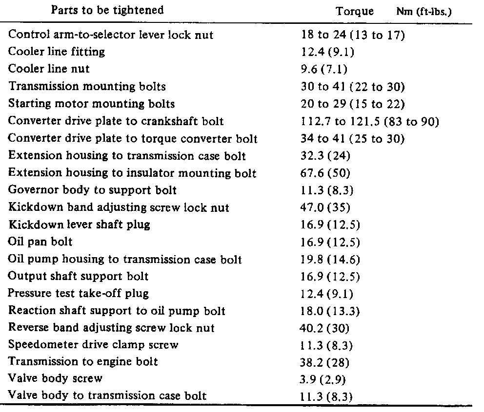 Torque Specifications