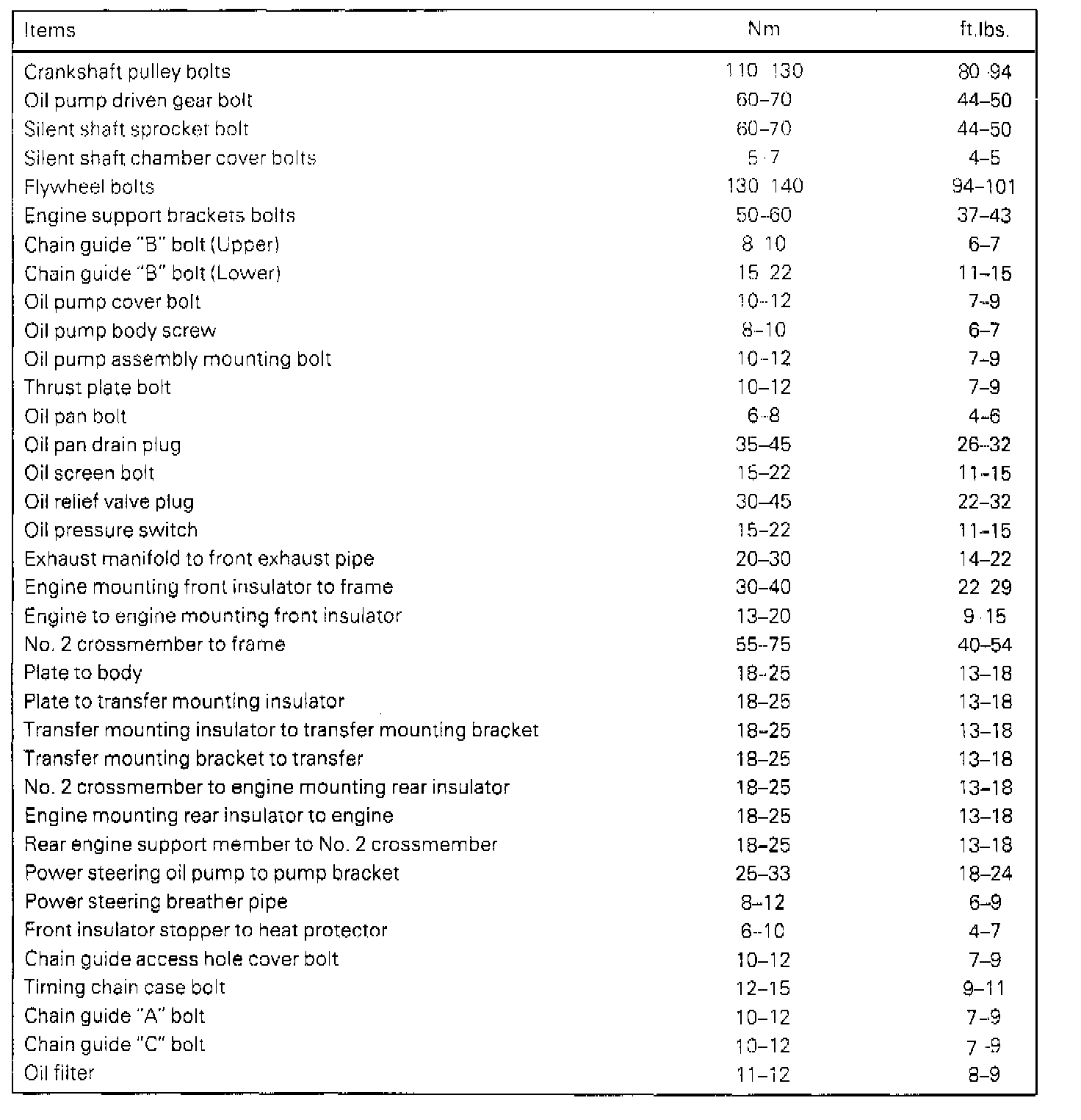 Tightening Specifications