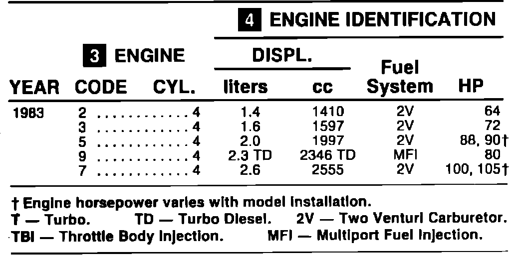 2 ENGINE CODE LOCATION: 8th character of V.I.N.
