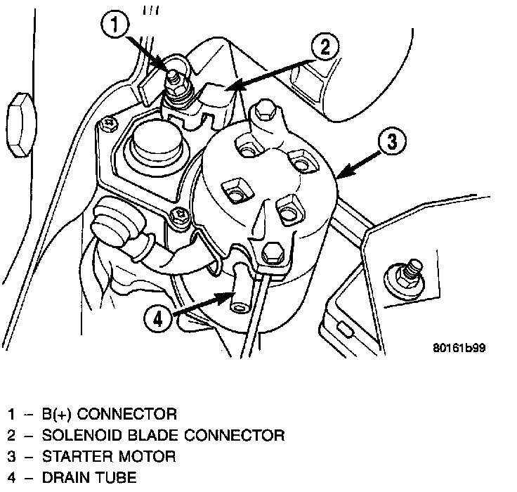 6. Disconnect solenoid and B+ wires from starter terminals.