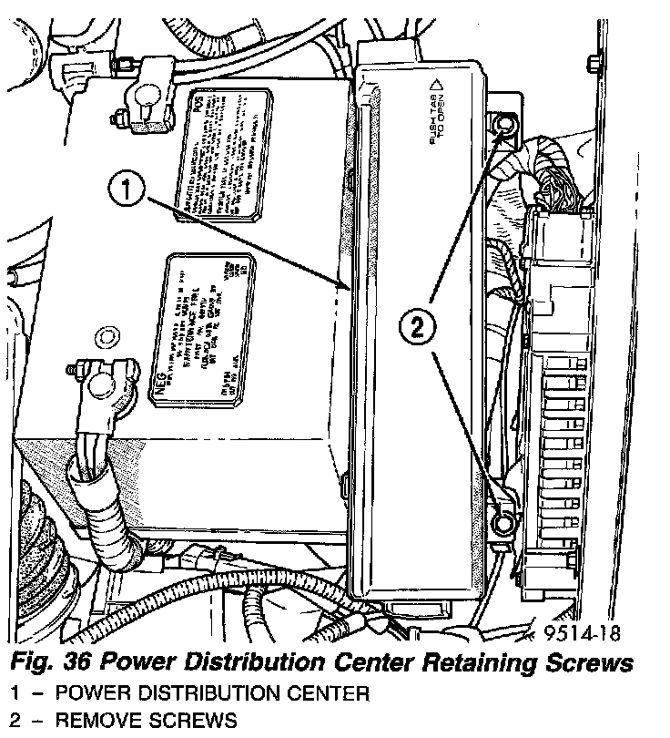 Fig. 36 Power Distribution Center Retaining Screws: