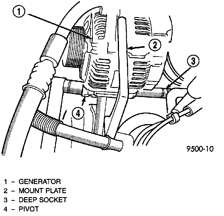 6. Remove bolts holding outside of generator mount bracket to generator mount plate.