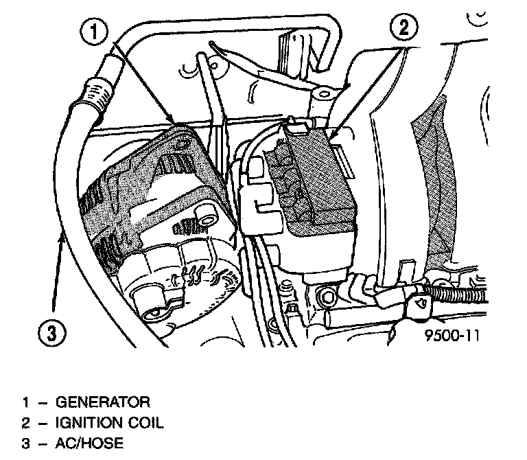 5. Remove bolt holding top of generator mount bracket to engine air intake plenum.