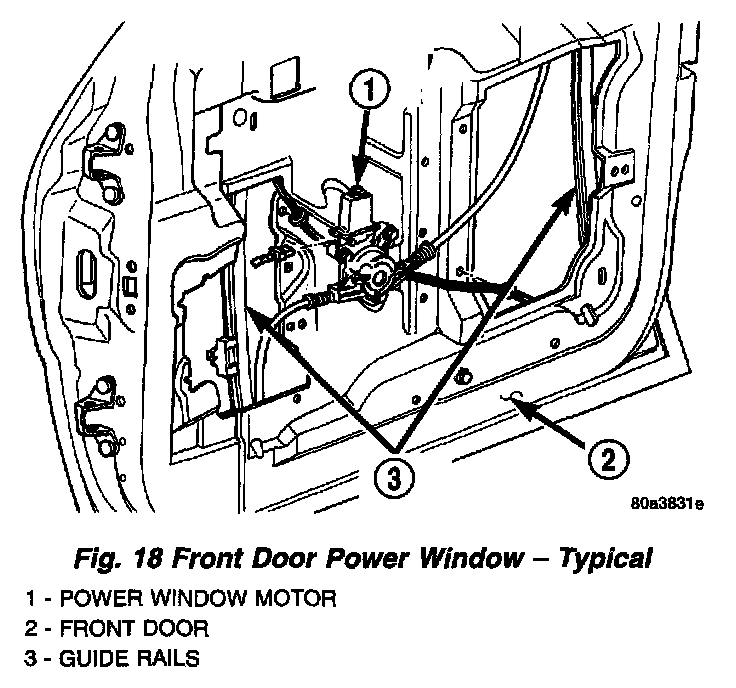 8. Extract rear guide rail through inner door panel rear access hole (Fig. 18).