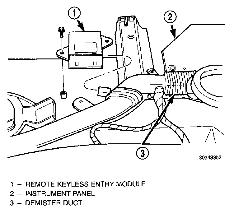 3. Remove screws holding RKE module to instrument panel.