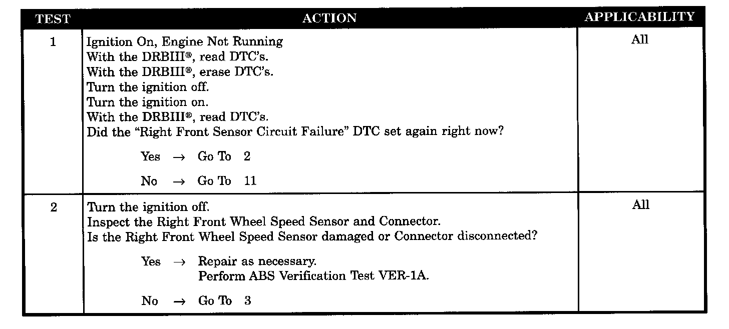 RIGHT FRONT WHEEL SPEED SENSOR DEFECTIVE (SHORTED TO GROUND)