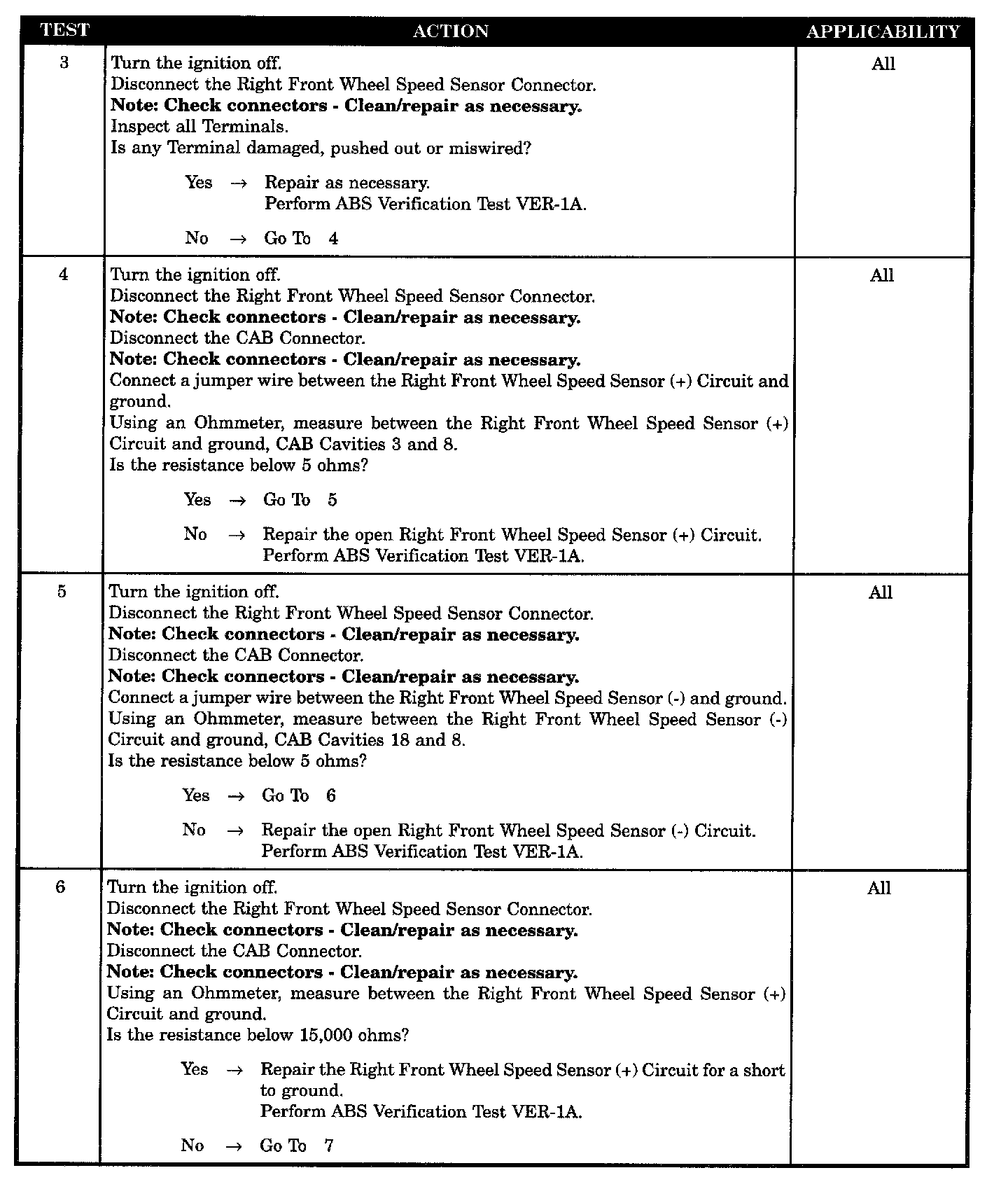 RIGHT FRONT WHEEL SPEED SENSOR CIRCUIT OPEN