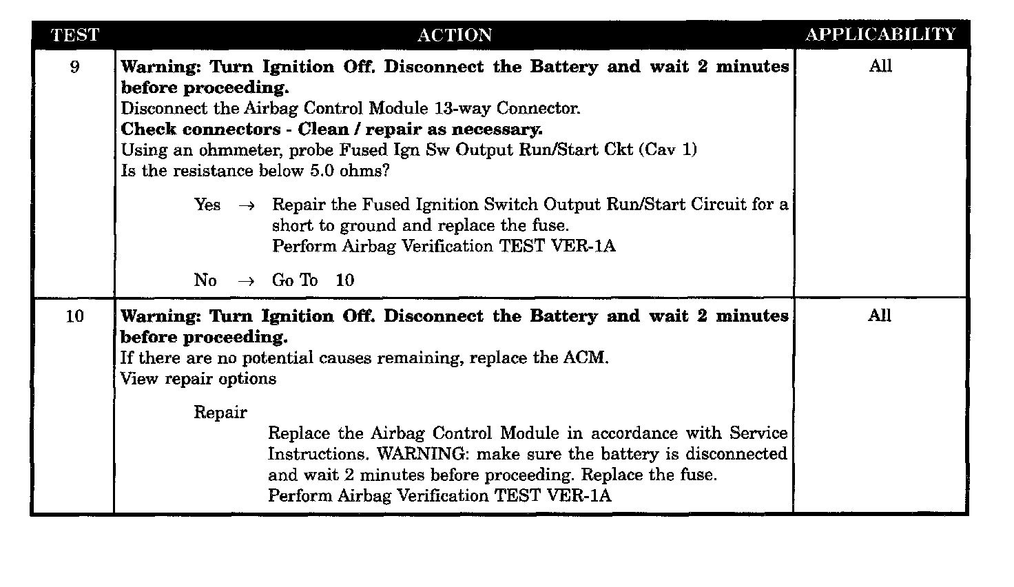 No Response From Airbag Control Module