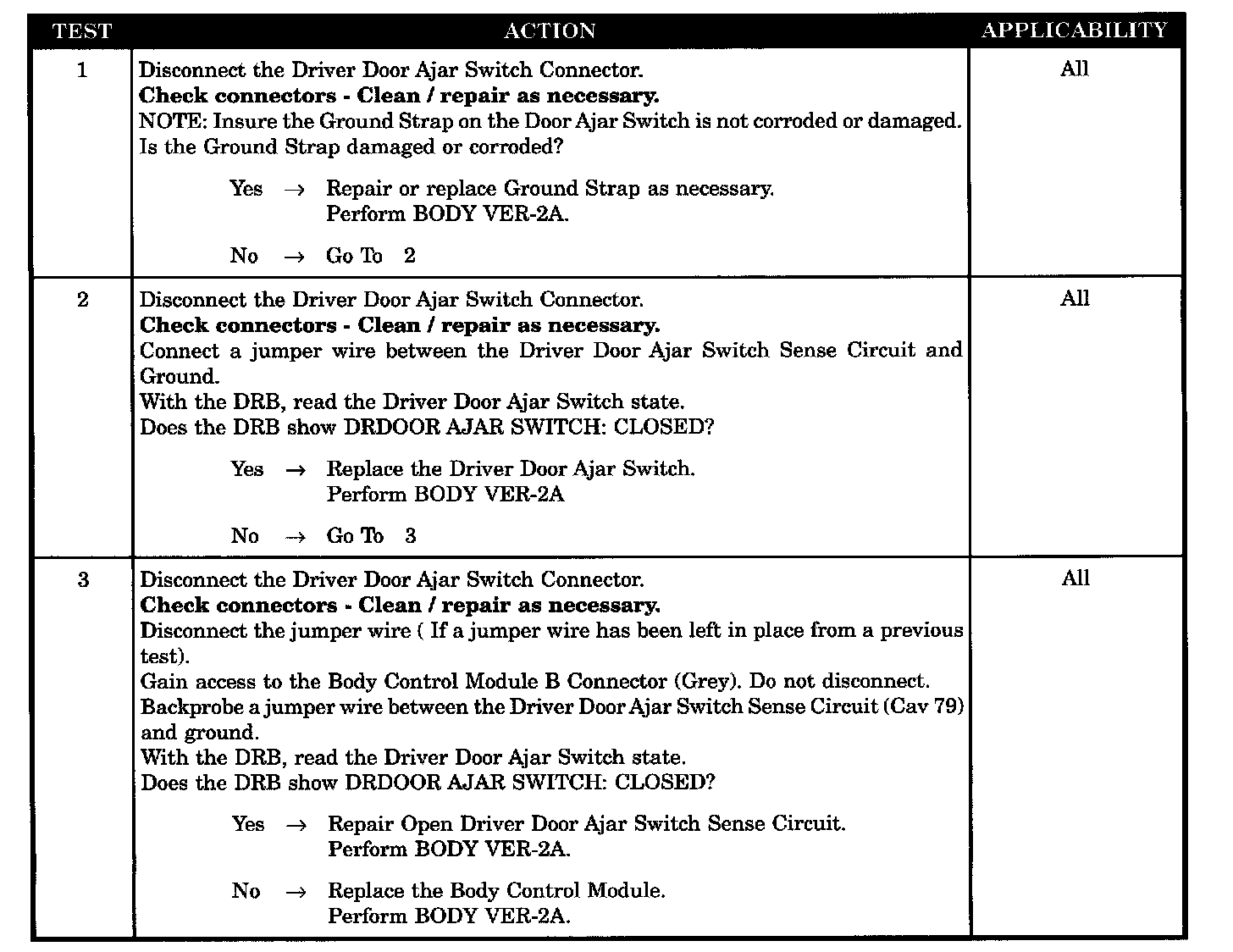 OPEN DRIVER DOOR AJAR CIRCUIT