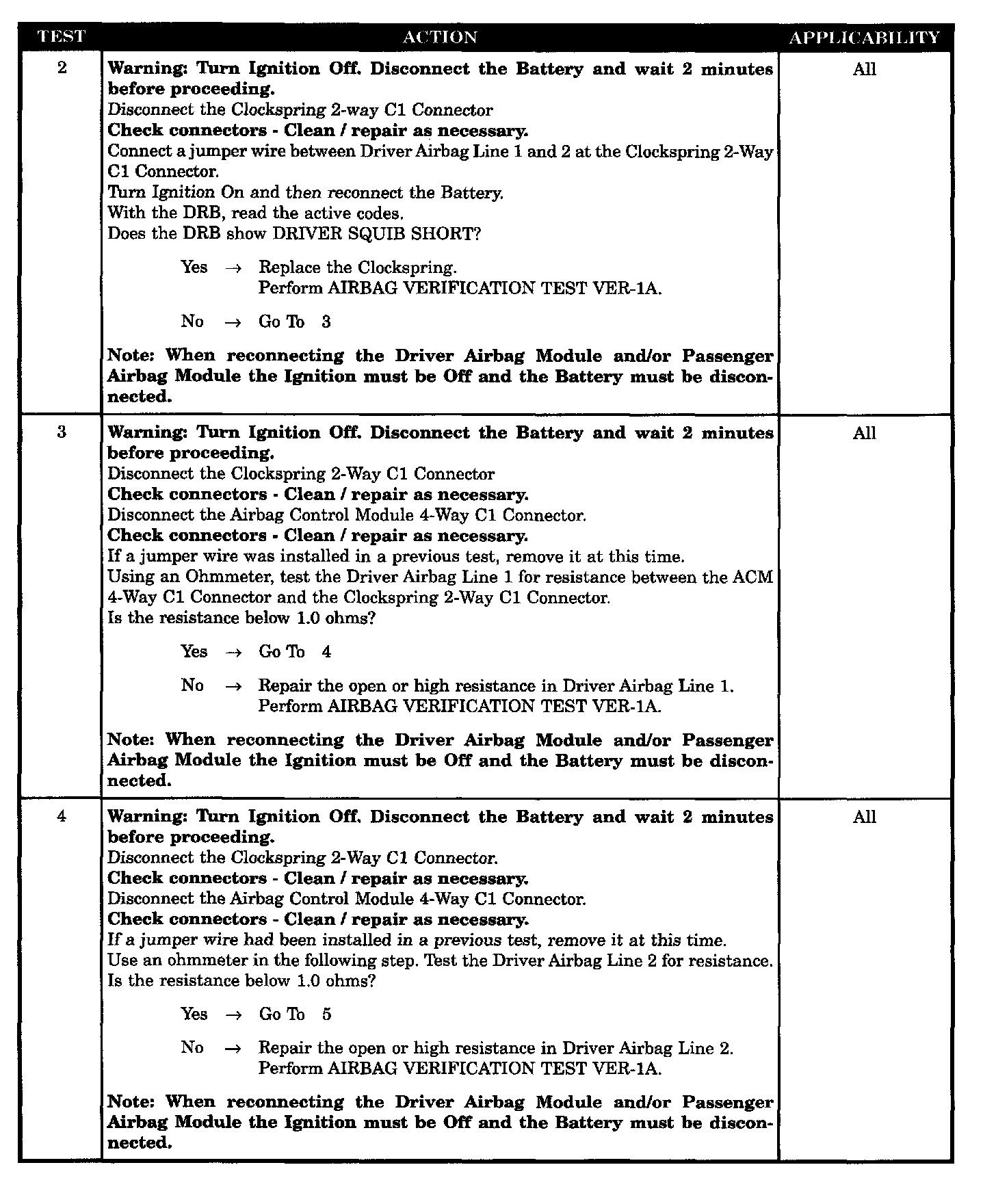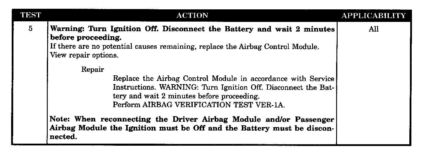- ACM defective, driver airbag circuit open