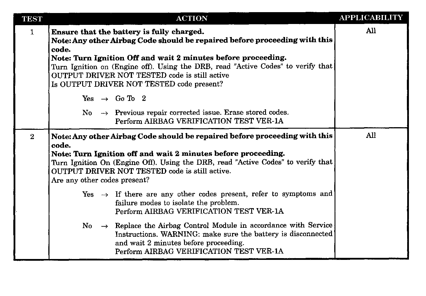 If all other squib codes have been repaired and this code appears active by itself, the problem Will be an internal failure of the airbag control module.