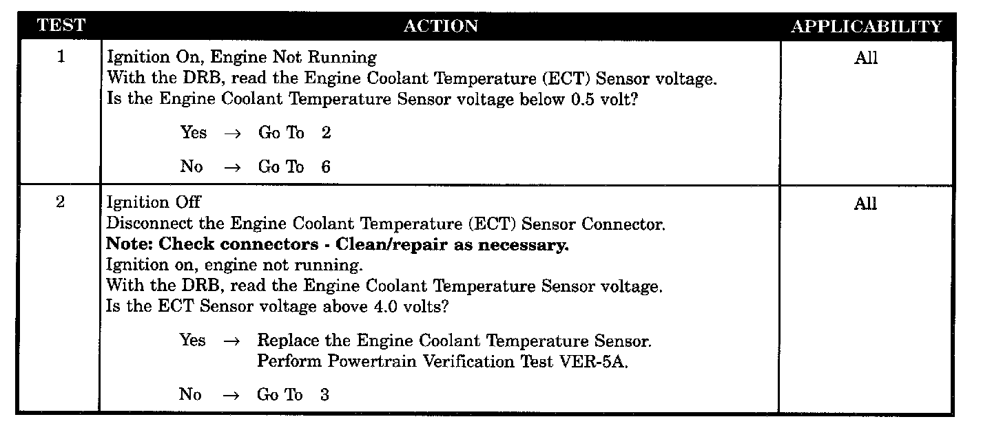 - ECT sensor signal circuit shorted to ground