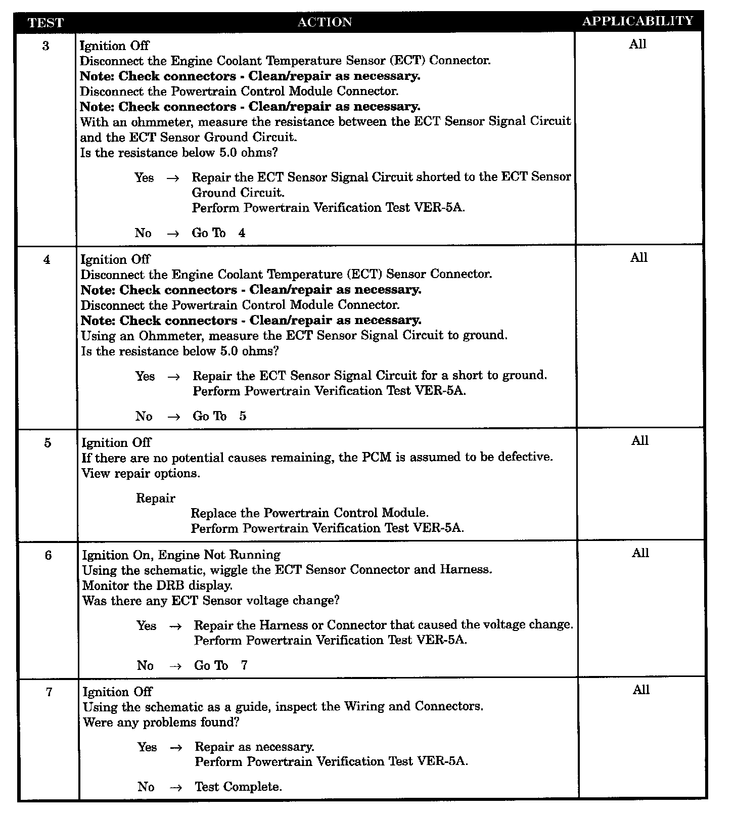 - ECT sensor signal circuit shorted to ground circuit