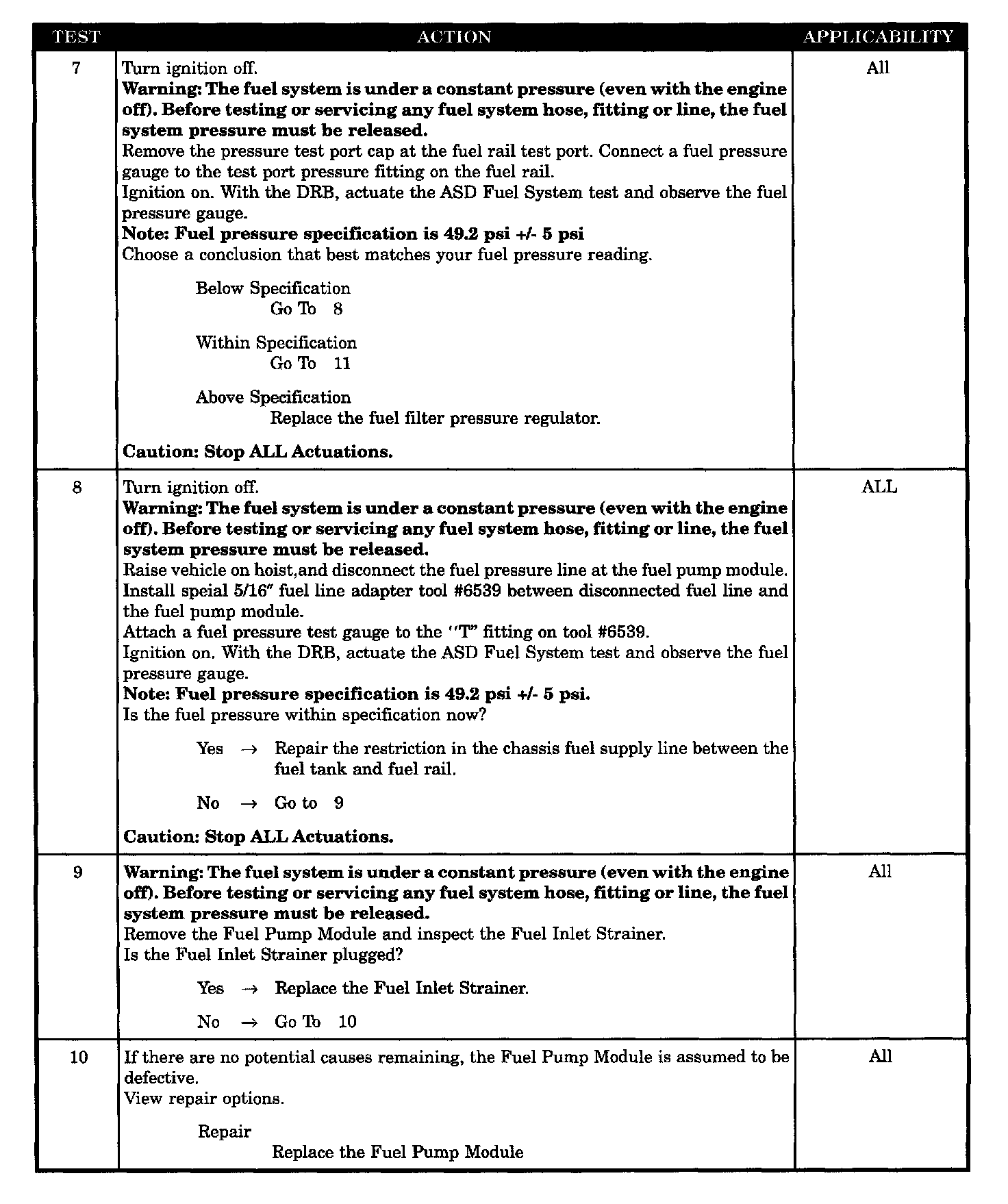 - Fuel pump module defective