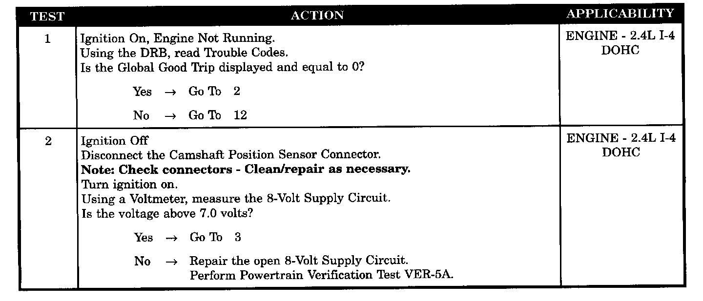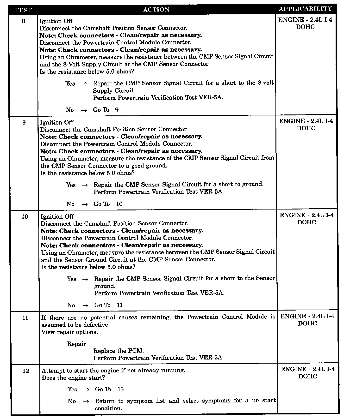 - CMP sensor signal circuit shorted to 8-volt supply