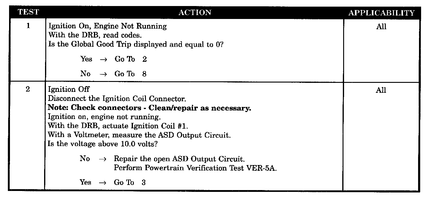 With battery voltage greater than 8 volts during engine cranking or greater than 12 volts with engine running, and none of the coils in dwell when checked.