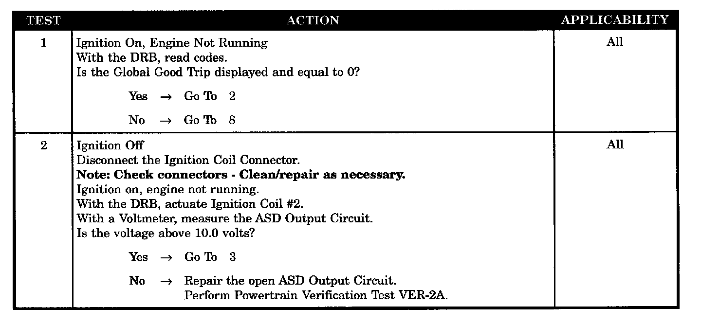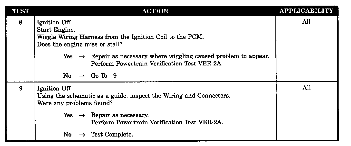 With battery voltage greater than 8 volts during engine cranking or greater than 12 volts with engine running, and none of the coils in dwell when checked.