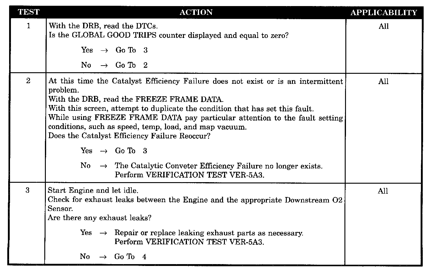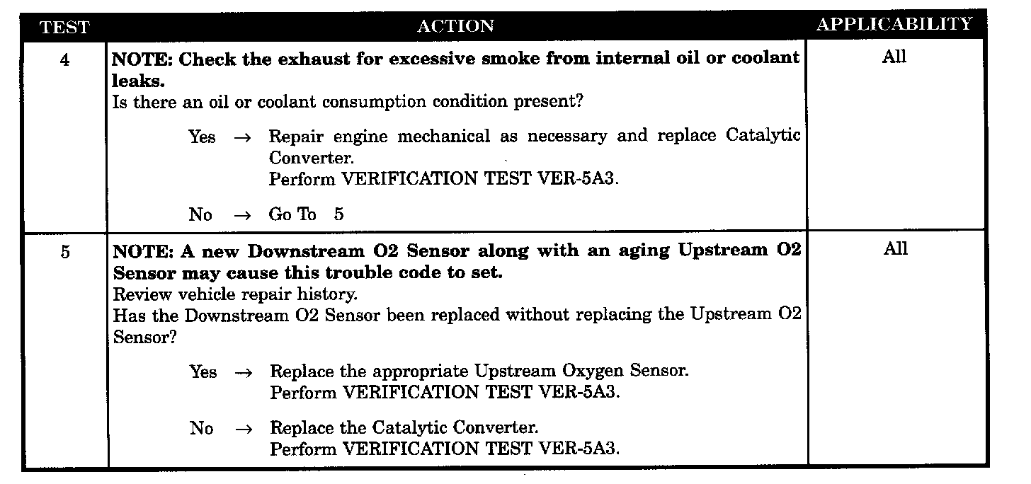 - Catalyst efficiency failure does not reoccur