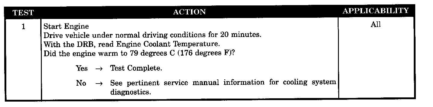 The engine does not warm to 79 °C (176 °F) while driving for 20 minutes after start.
