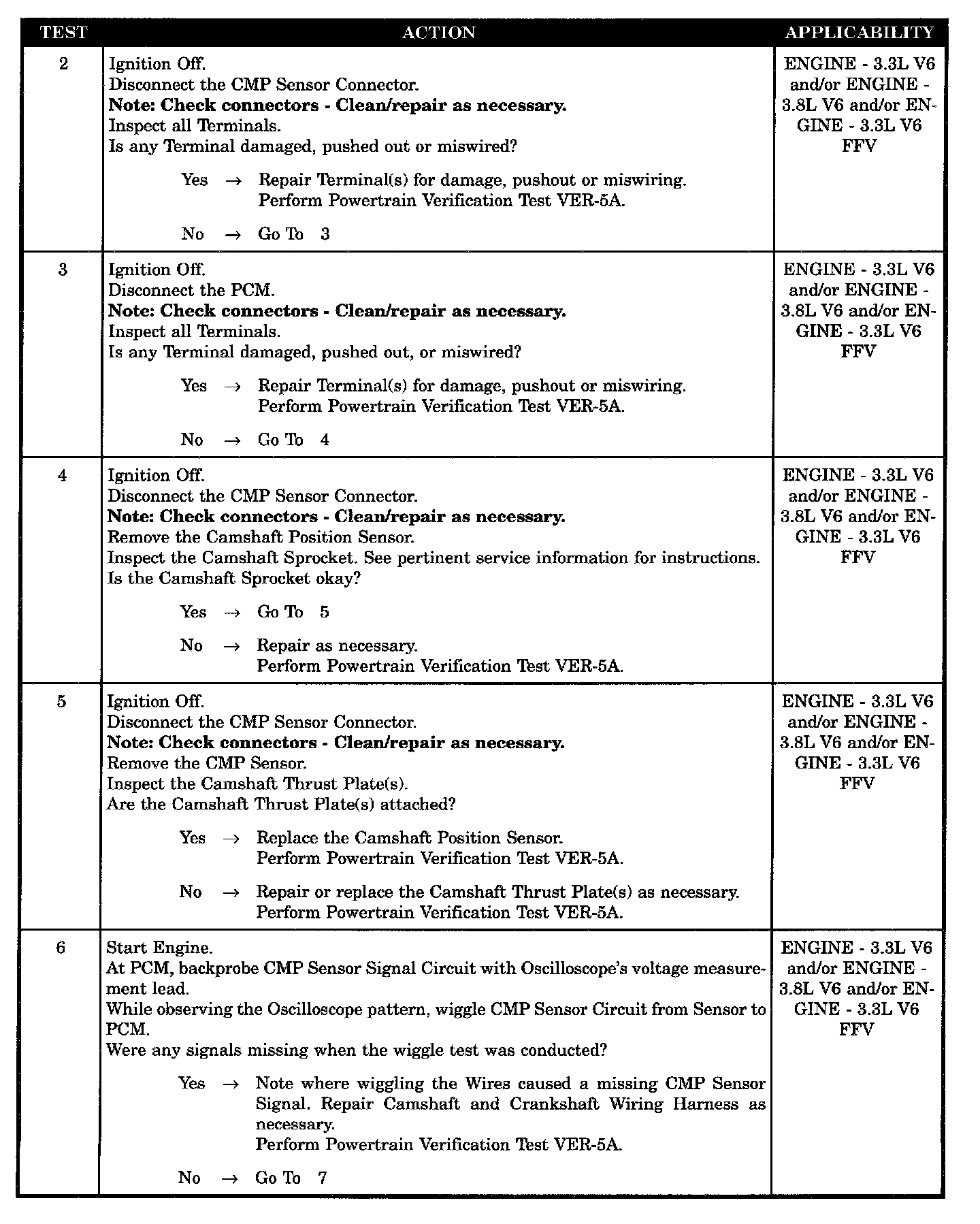 - CMP sensor signal circuit wiring harness intermittent defect