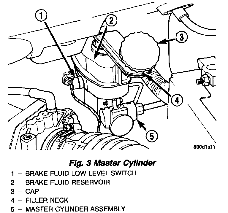 DESCRIPTIONThe master cylinder is located on the power brake booster in the engine compartment on the driver's side. This vehicle uses 3 different master cylinders. Master cylinder usage depends on what type of brake system the vehicle is equipped with.