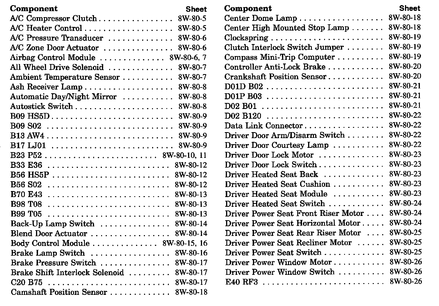 Sheet 8W-80-1 Group Index