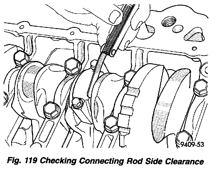 10. Using a feeler gauge, check connecting rod side clearance (Fig. 119).