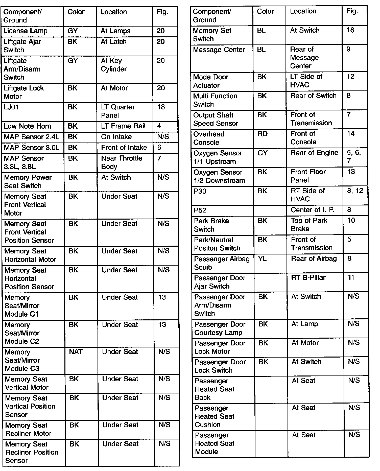 Connector Locations Component Index: