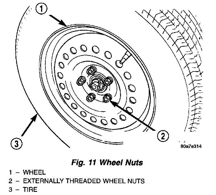 CAUTION: When installing the tire and wheel, never use oil or grease on the studs or nuts.