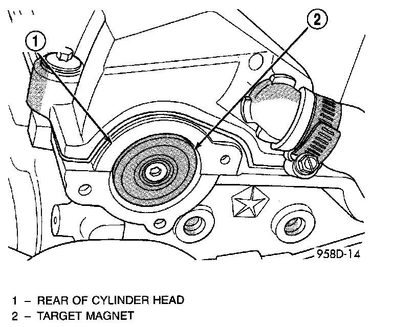 1. Install target magnet in end of camshaft. Tighten mounting screw to 5.65 Nm (50 in. lbs.) torque.
