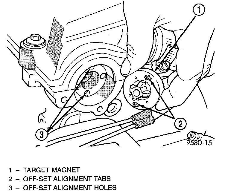 The target magnet has locating dowels that fit into off-set machined locating holes in end of the camshaft.