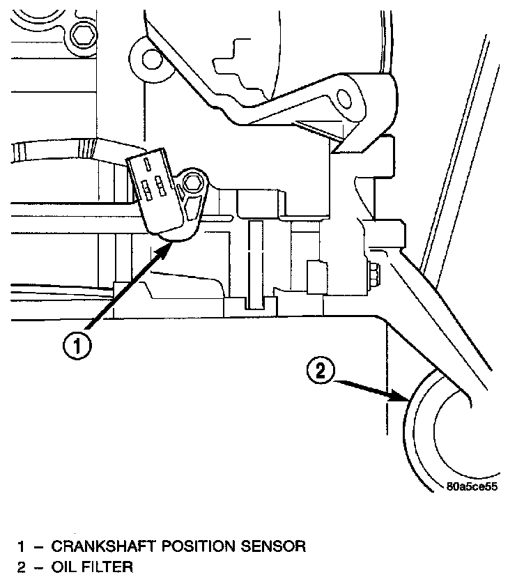 The Crankshaft Position Sensor mounts to the engine block behind the generator, near the oil filter.