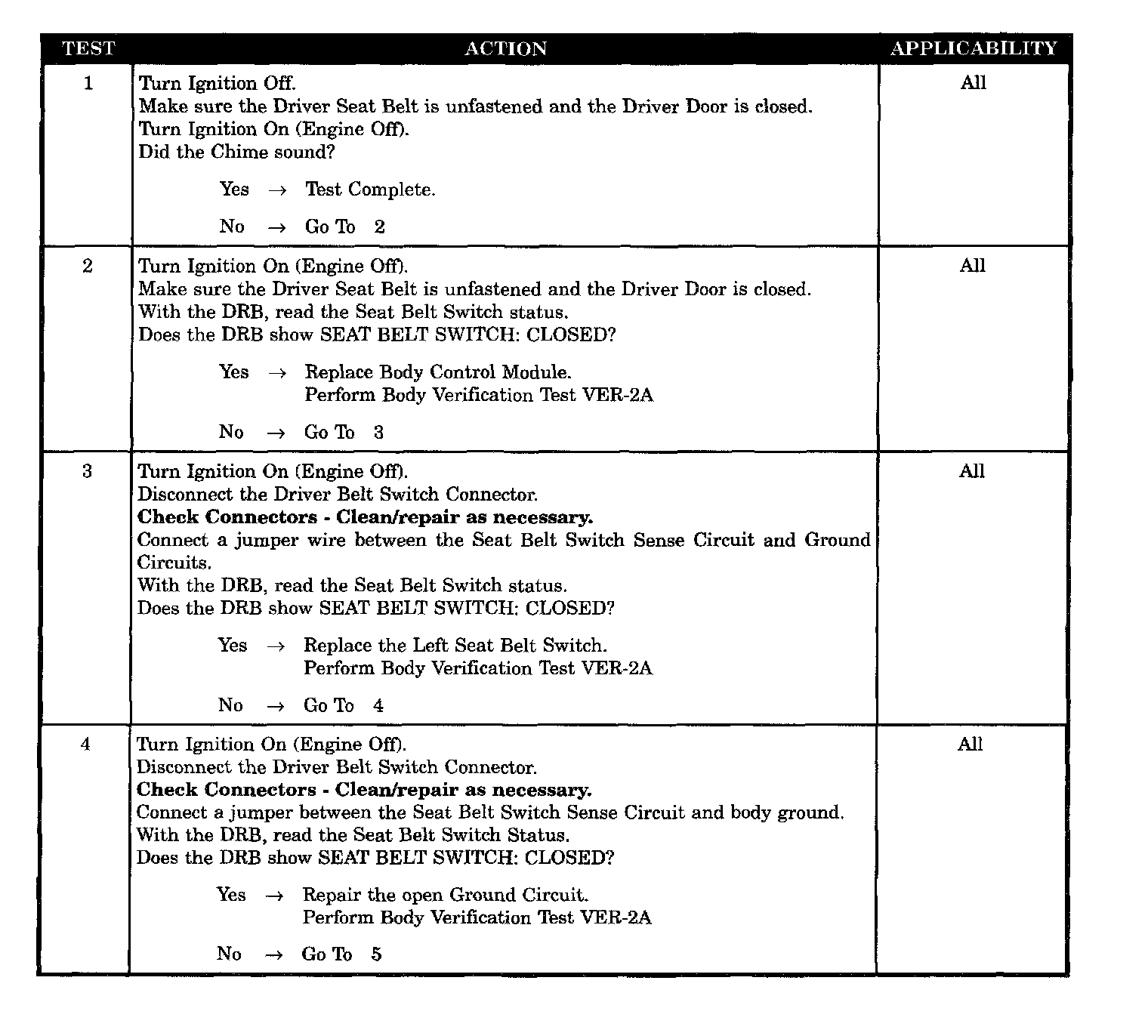 Chime Inoperative With Drivers Seat Belt Unfastened