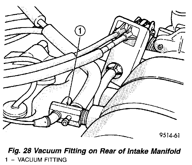 Fig. 28 Vacuum Fitting On Rear Of Intake Manifold: