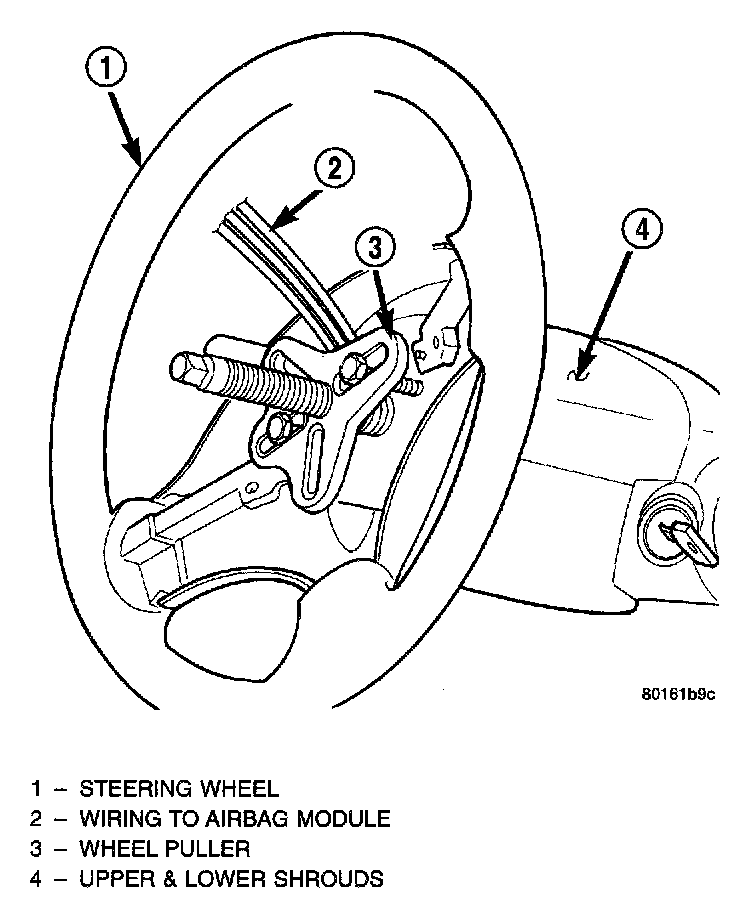 1. Position steering wheel and front wheels straight ahead.