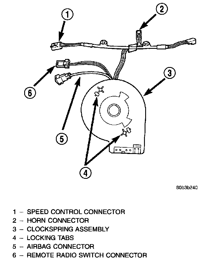9. Remove clockspring from housing assembly by depressing the two tabs on the clockspring.