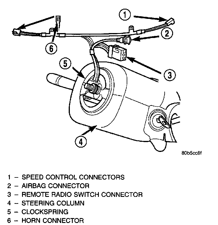 8. Disconnect 2-way and 5-way connectors between the clockspring and the instrument panel wiring harness.