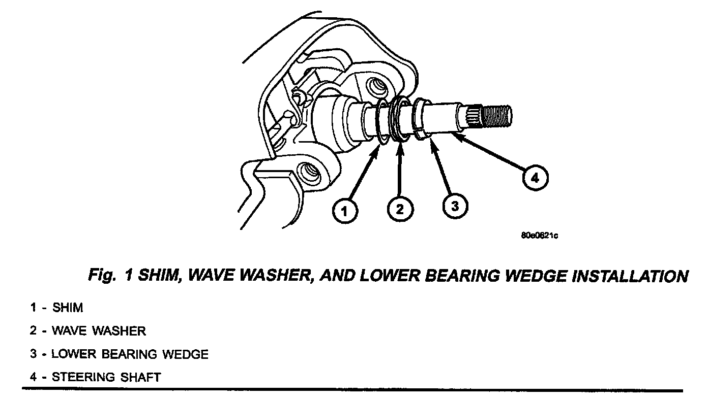 16. To the base of the shaft, install in order: the shim, the wave washer, and the lower bearing wedge (Fig. 1).