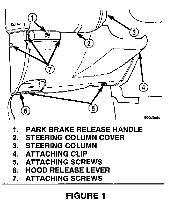 3. Remove the screws attaching the lower steering column cover and separate the cover from the instrument panel (Figure 1).