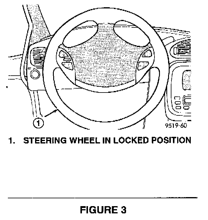 6. Remove the key from the ignition switch and rotate the steering wheel to the left one half turn until the steering wheel lock engages (Figure 3).