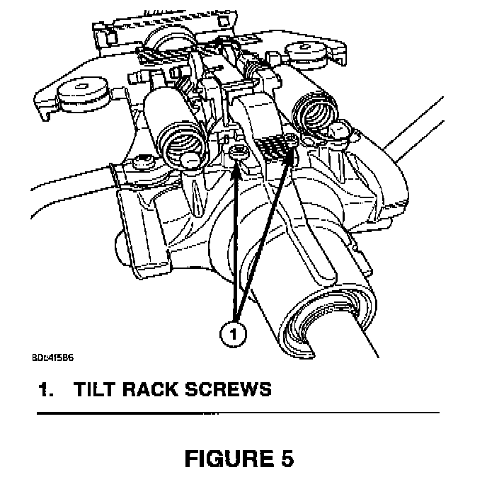 15. Check the tightness of the two tilt rack attaching screws, make sure they are torqued to 6 Nm (50 in. lbs.), (Figure 5).