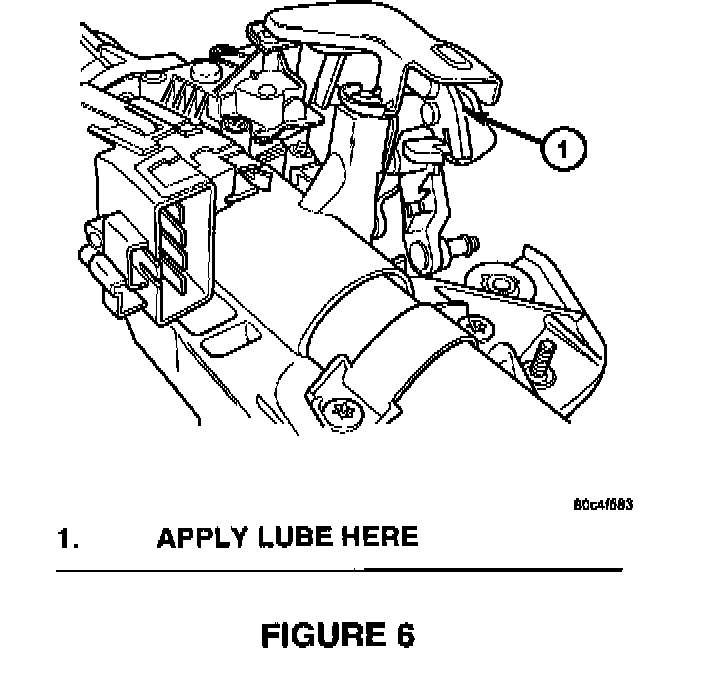 16. Dab lubricant between the shift lock out tab/finger, pivot and bracket (Figure 6).