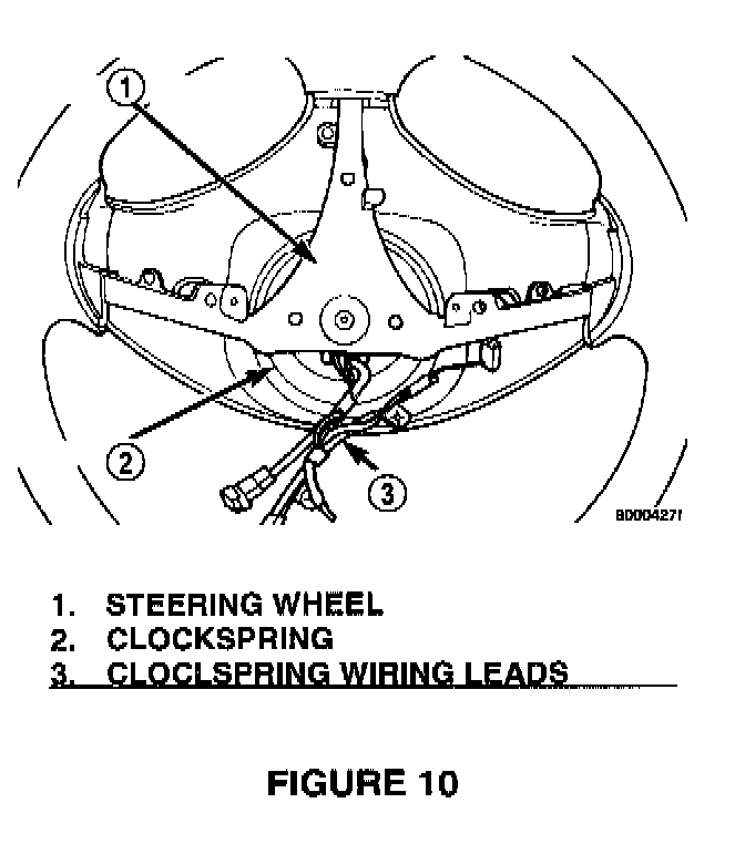 23. Align the master splines on the steering wheel and the steering column shaft as well as the flats on the steering wheel hub with the formations on the clockspring and install the wheel onto the shaft. Wiring leads from the clock spring must be routed as shown in Figure 10.
