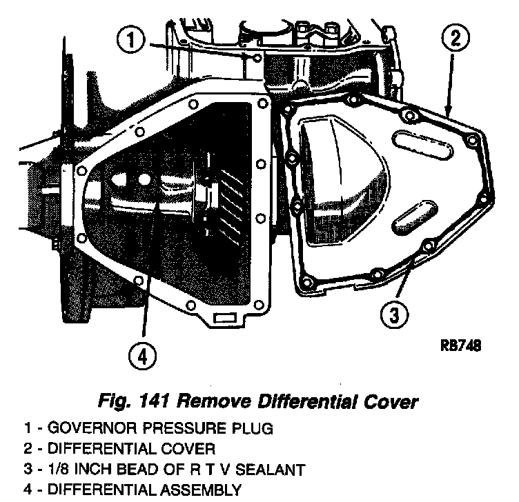 5. Remove differential cover (Fig. 141). Clean surfaces of old adhesive prior to reassembly.