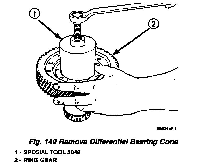 14. Remove differential bearing cone (Fig. 149).