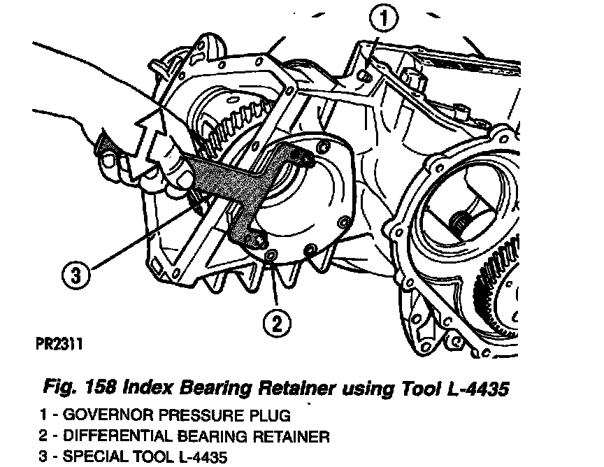 8. Install bearing retainer and index using Tool L-4435 until bolt holes align (Fig. 158).